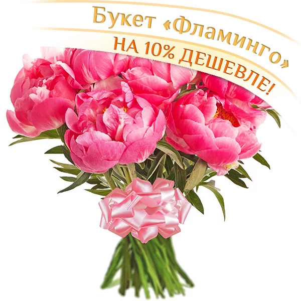 15 пионов: пионы розовые - 15 шт., лента розовая.